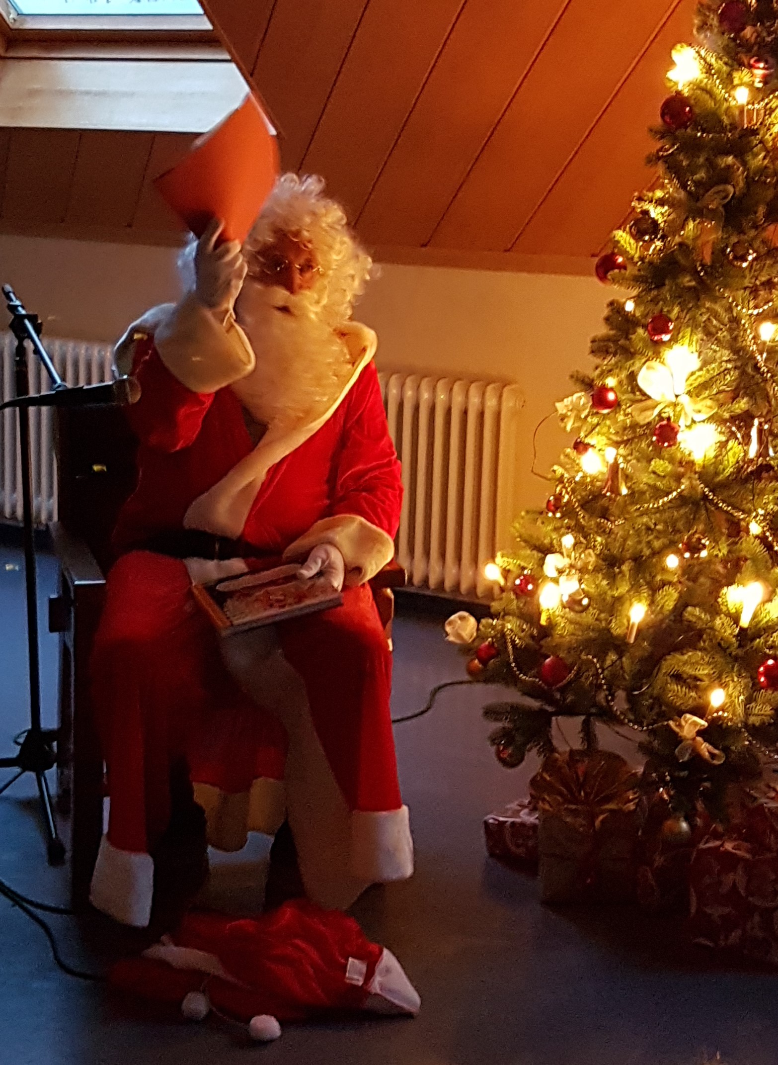 Anschließend wurden kräftig die Weihnachtslieder gesungen (musikalisch begleitet) bevor uns der Nikolaus besuchen kam.