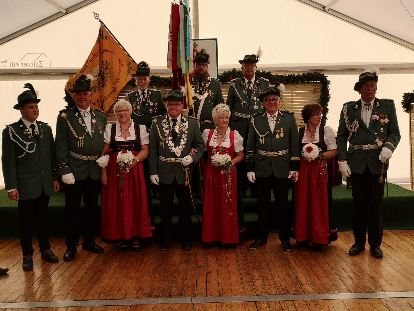 Die Menge Arbeit hat sich gelohnt. Nach der Abholung unserer neuen Majestäten am Abend ging es mit einem kurzen Marsch ins Festzelt, wo die Inthronisierung stattfand.