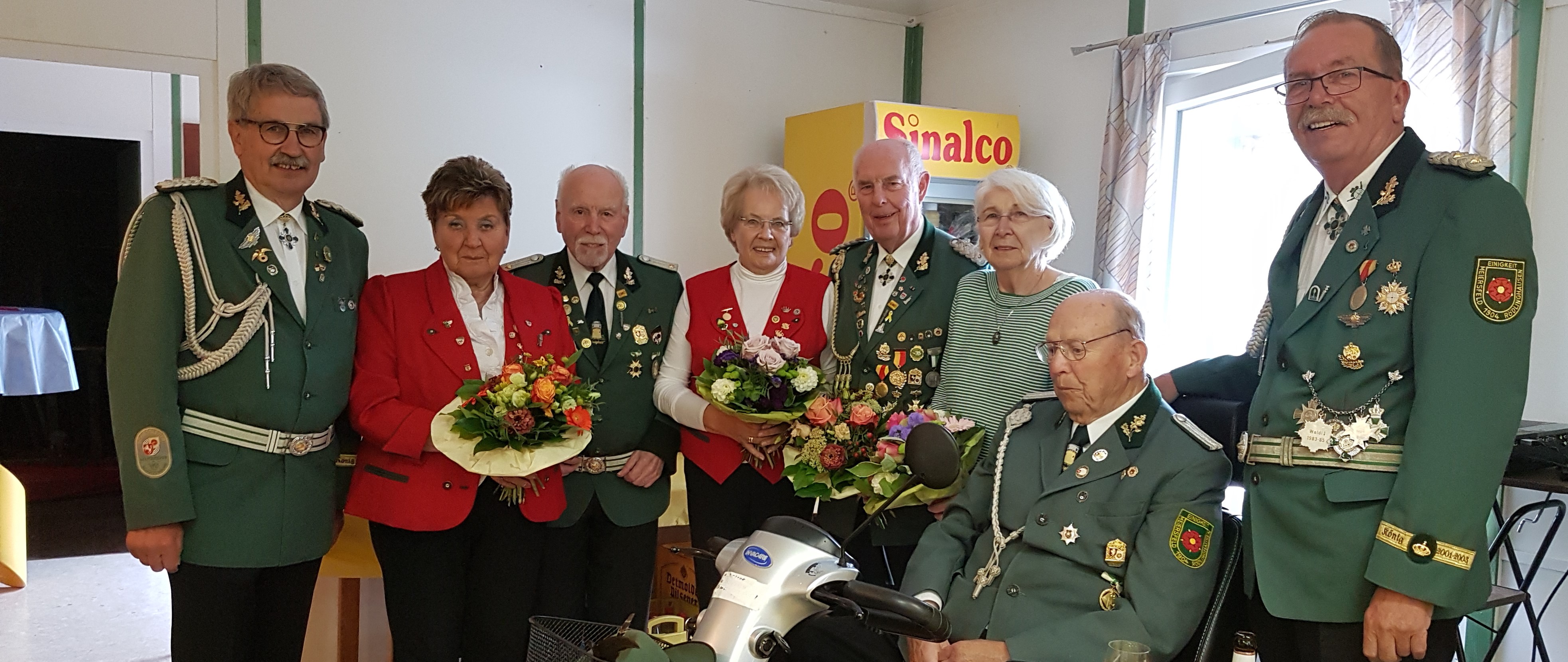 Da unsere derzeitigen Majestäten Ralf Kaiser und Ulrike Menton mit ihren Thronpaaren Marion und Manfred Linde sowie Tanja Funke und Frank Schulz im letzten Jahr auf viele Veranstaltungen aufgrund Corona leider verzichten mussten, hat sich der gesamte Thron sofort bereiterklärt ihre Thronzeit bis zum nächsten Schützenfest 2023 zu verlängern.