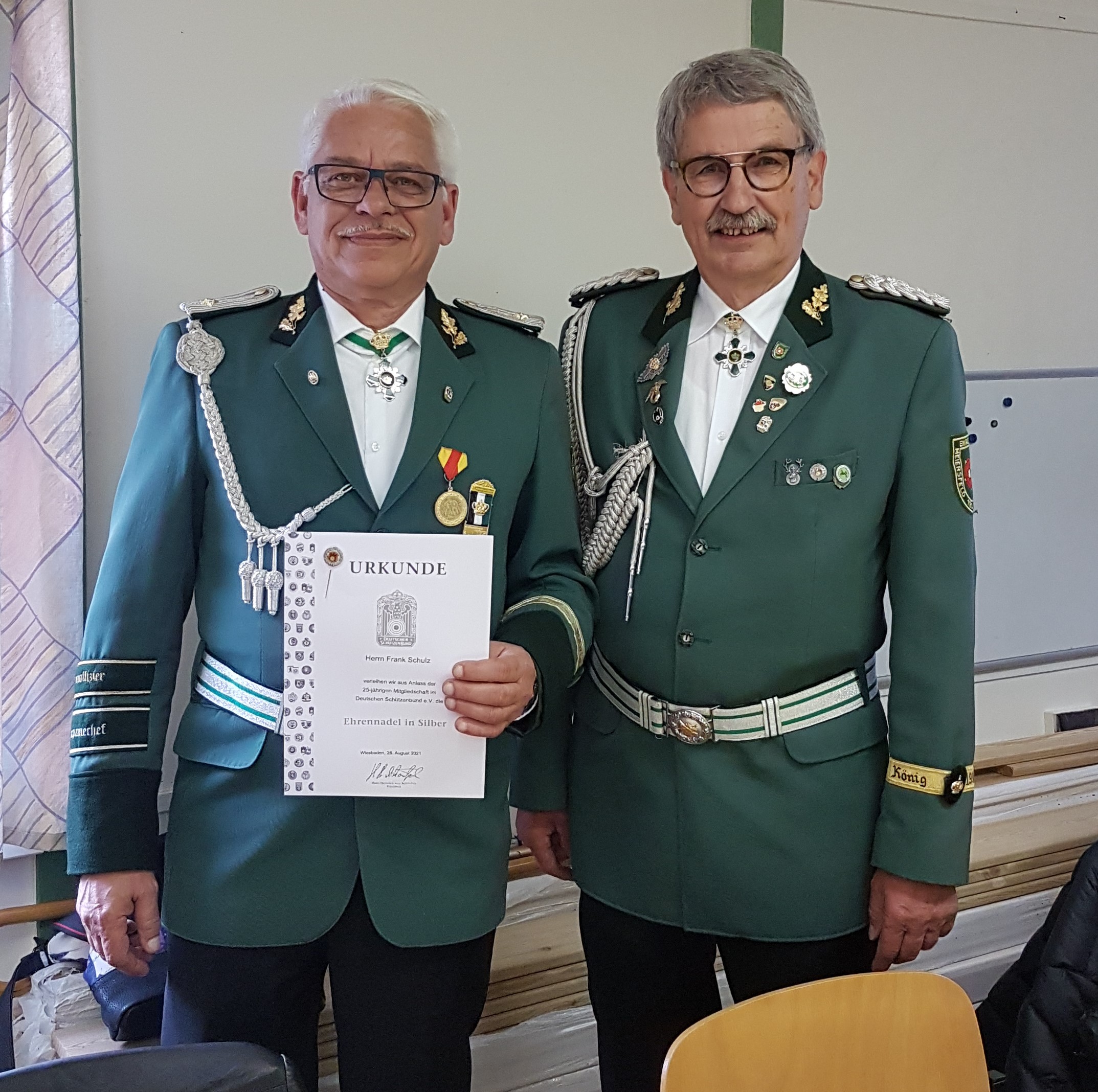 Dem Fahnenträger Renè Hersel-Müller und dem Fahnenbegleiter Alex Knöfler wurden vom Westfälischen Schützenbund für ihre Verdienste die Fahnennadel in Silber verliehen.