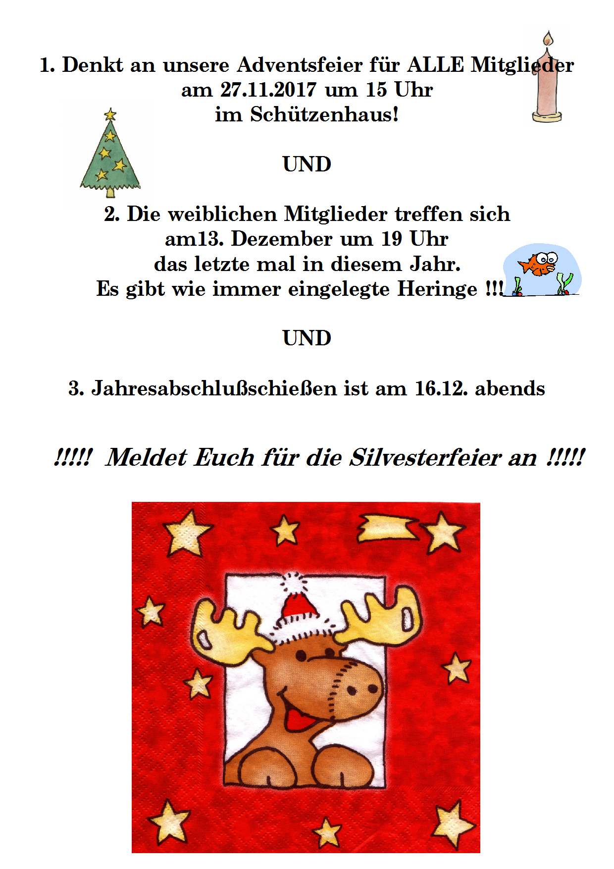 Alle männlichen Erwachsenen unseres Vereins sind herzlich aufgerufen am Schießen teilzunehmen.