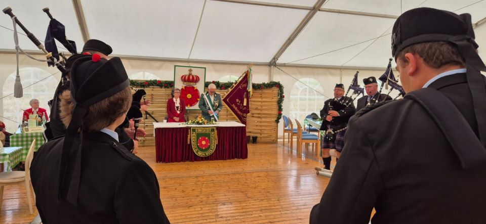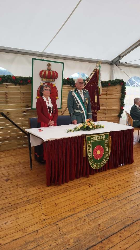 Nach einem tollen Aufenthalt von 1 ½ Stunden ging es mit einem kurzen Marsch ins Festzelt, wo die Inthronisierung der neuen Majestät und ihrem Thronbegleiter stattfand.