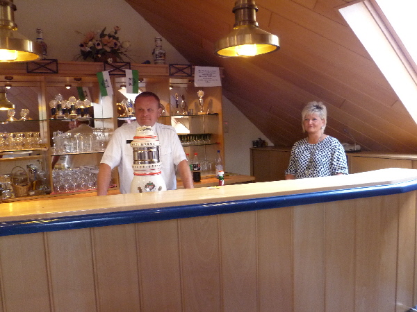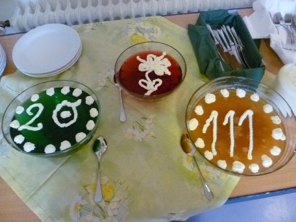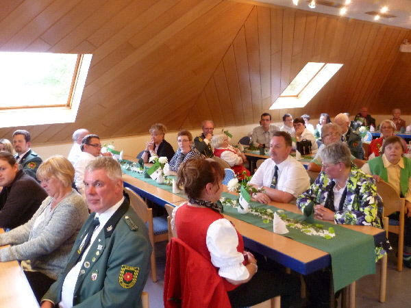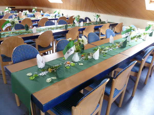 In der Zwischenzeit vervollständigten die Damen des Vereins das Buffet. Der Nachtisch war verziert mit den Zahlen " 20" und "111" : das Schützenhaus steht jetzt 20 Jahre und der Verein ist 111 Jahre jung.