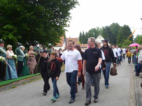Der Wettergott war uns am Sonntag nicht ganz so gesonnen, aber der große Regen setzte erst nach dem Festumzug ein. Leider werden es immer weniger Menschen, die sich den Umzug ansehen. Am Paradeplatz im Dürerweg waren es doch eine ganze Menge. Zum ersten Mal waren Teilnehmer der Kirchengemeinde "Schöne Aussicht" beim Umzug dabei. Auch sie hatten viel Spaß.