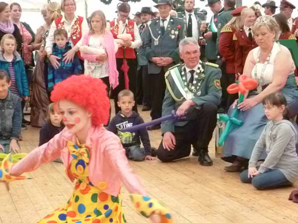 Mit Spannung wurde von den Kindern der Kindertanz erwartet. Nina und Simon waren schon vorher im Zelt unterwegs und erfreuten die vielen Kinder mit Zauberluftballons. So an die 80! Ballons wurden von den Beiden geformt. Wie immer machte natürlich auch das Königspaar mit Thron beim Kindertanz mit. Auch viele Erwachsene hatten ihren Spaß an den ausdrucksstarken Tänzen.