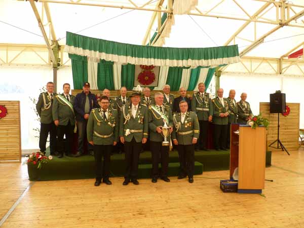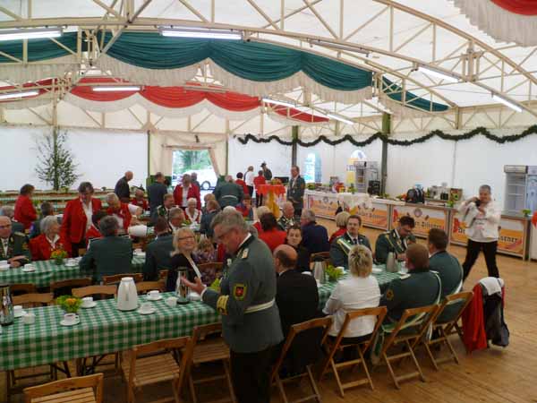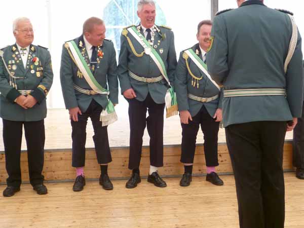 Am Montag gab es wieder ein ausgezeichnetes Frühstück. Als Ehrengäste waren anwesend der Bürgermeister Herr Heller, der Bezirksbeamte Herr Nack, von der Privat Brauerei Strate Herr Uhlig und das Ehepaar Olga und Rudi Dück von der "Schönen Aussicht". Nach den üblichen Begrüßungen und Grußworten gab es noch Ehrungen für 25 und 40 jährige Vereinszugehörigkeit. Auch Beförderungen wurden ausgesprochen.
