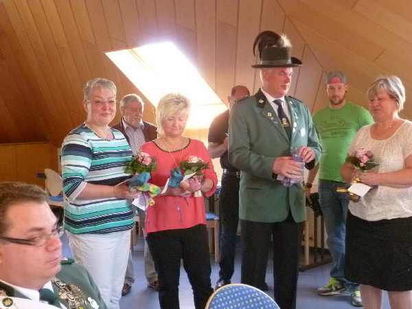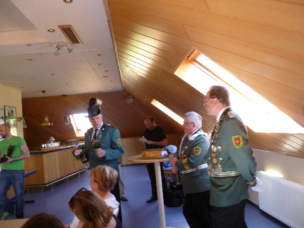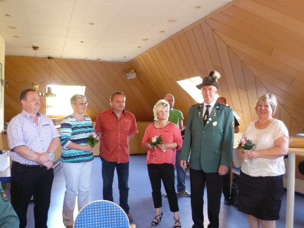 Am Sonntag, den 07.06.2015 fanden sich die Mitglieder des SV "Einigkeit" Meiersfeld-Rödlinghausen e.V. im Schützenhaus ein, um ihren Thron 2015/2017 kennenzulernen. Der zukünftige König Manfred I. hatte leider eine schlechte Nachricht: er erschien alleine. In der Hand hatte er drei Blumensträusse und die wollte er jetzt an drei auzuwählende Damen verteilen. Den ersten bekam seine Ehefrau Marion, unsere zukünftige Königin Marion I. Den zweiten überreichte er Uli Menton mit der Frage, ob sie mit auf den Thron gehen würde. Zu unserer aller Freude sagte sie ja. Ihr Partner Ralf Kaiser sagte dann auch zu. Den dritten konnte Manfred in seiner Nachbarschaft abgeben: Pia und Thomas Roß stellten sich der Herausforderung: Thron 2015/2017. Das Ganze entpuppte sich als Gag des neuen Throns! Natürlich hatte Manfred seinen Hofstaat schon vor dem heutigen Tag beisammen! Leider war es nicht gelungen, einen Adjutanten zu finden. Manfred bat die Anwesenden, mal in sich zu gehen und über die vakante Stelle nachzudenken.