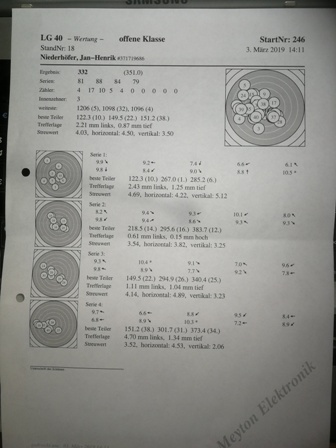 Jugendklasse Tristan Rubbe 244 Ringe 10. Platz    Juniorenklasse Jan-Hendrik 332 Ringe 7. Platz