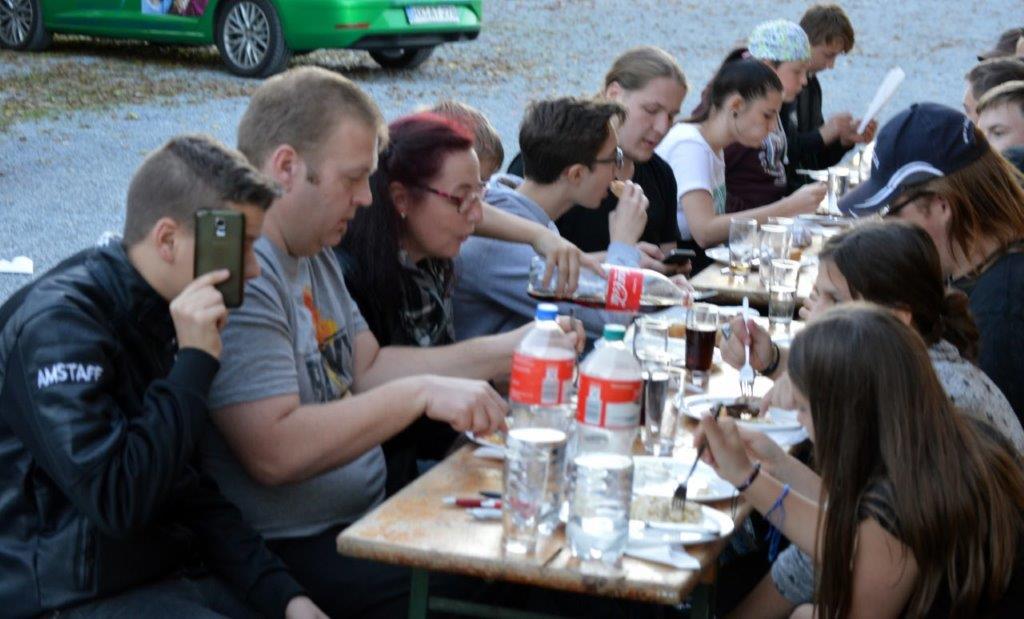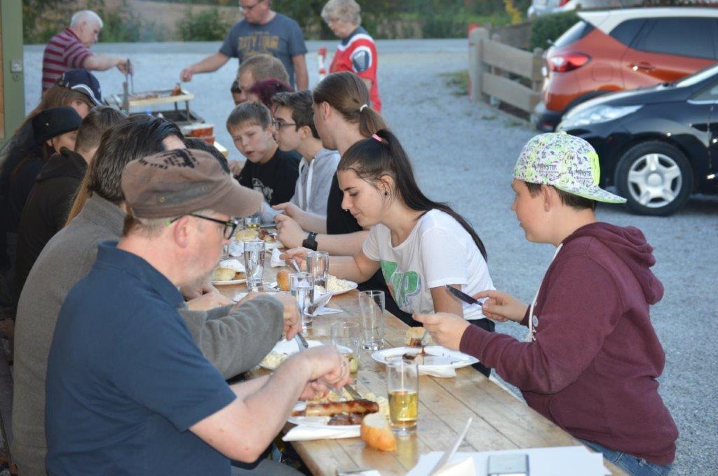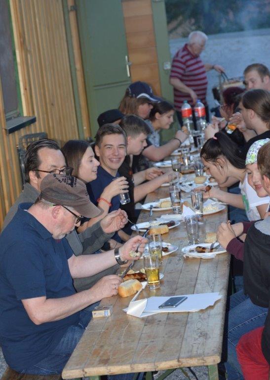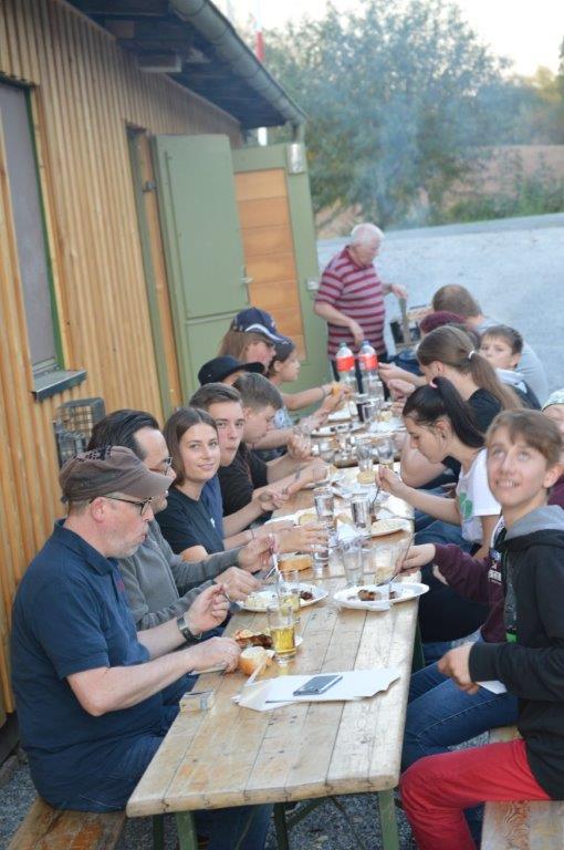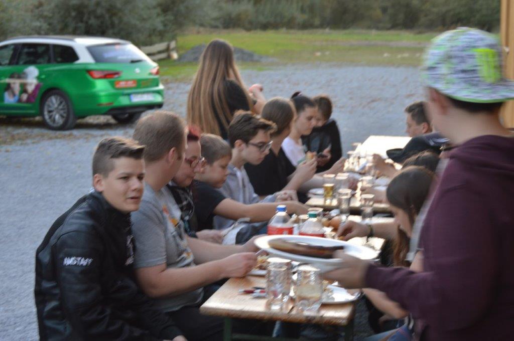 Danach sind wir zurück zum Schützenplatz gegangen und da alle wieder sehr hungrig geworden waren wurden die Reste vom Grillabend und auch die Kuchenreste verzehrt.