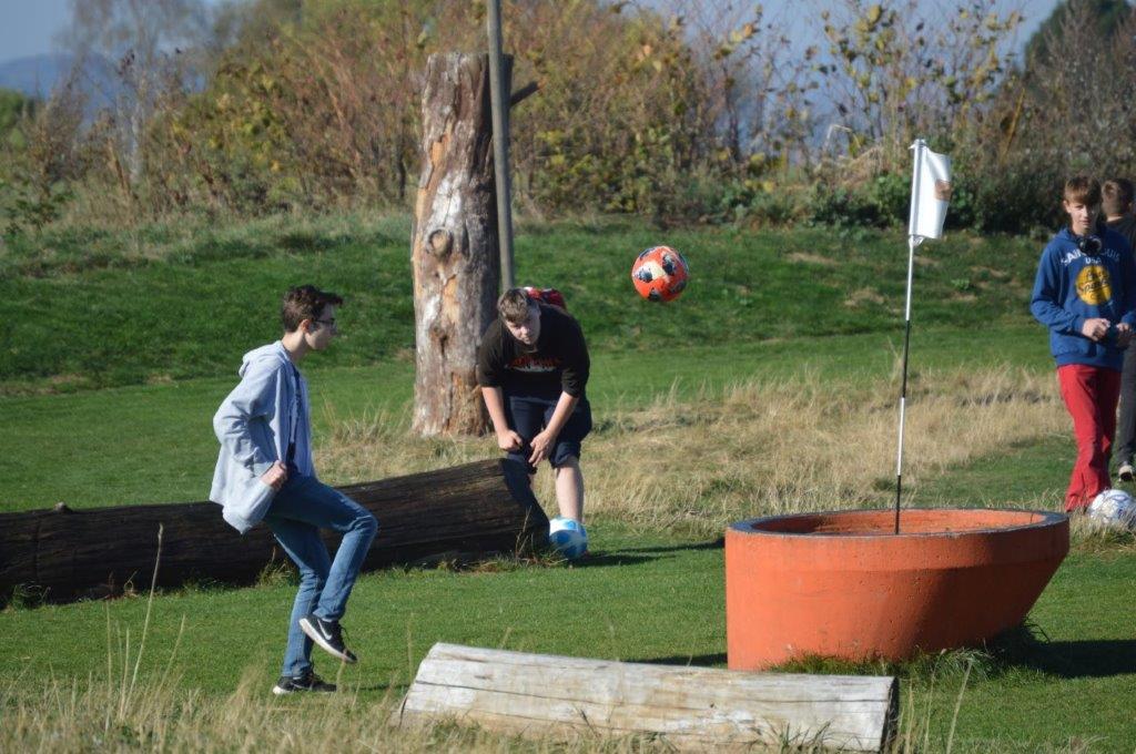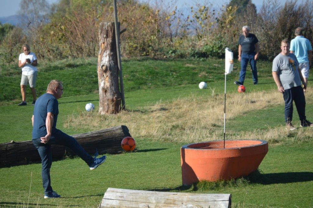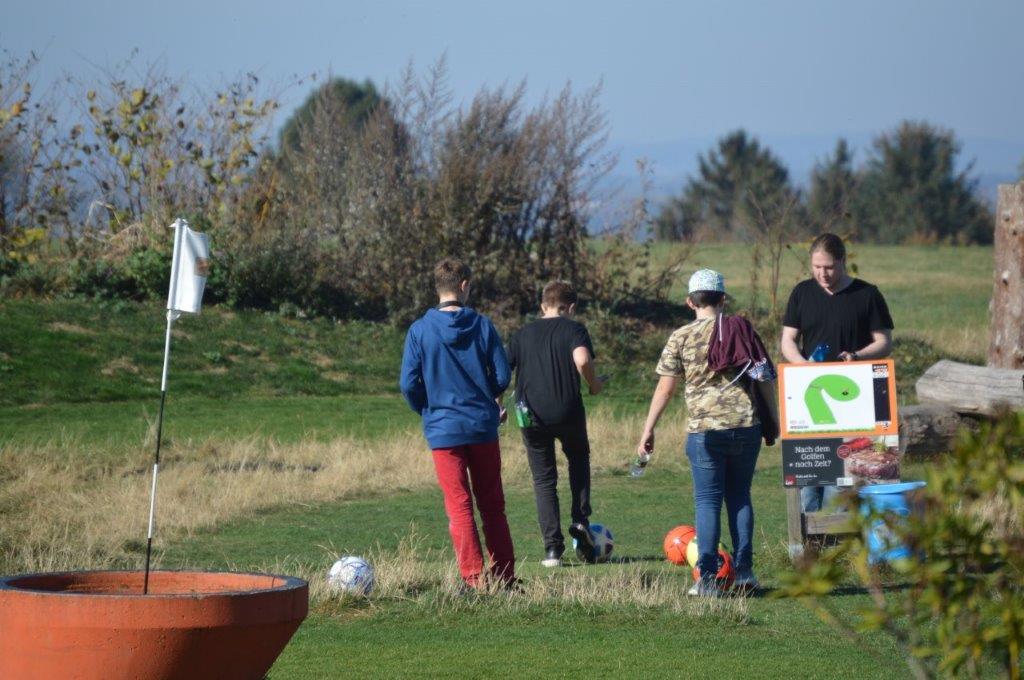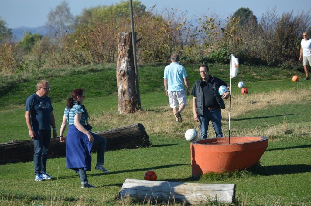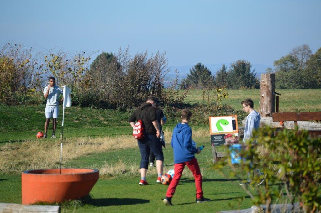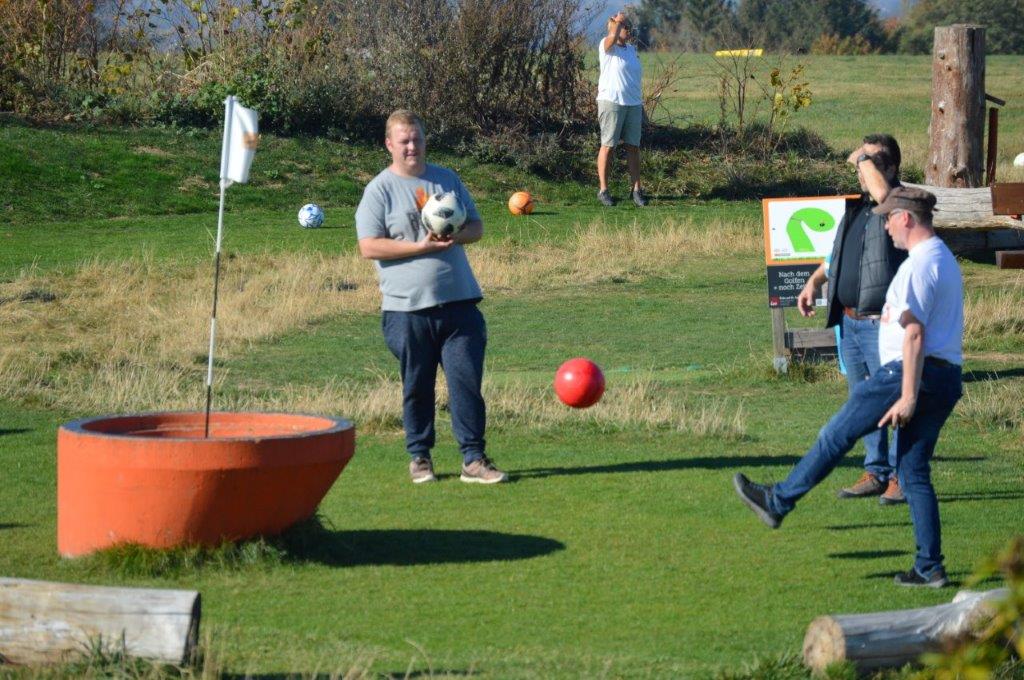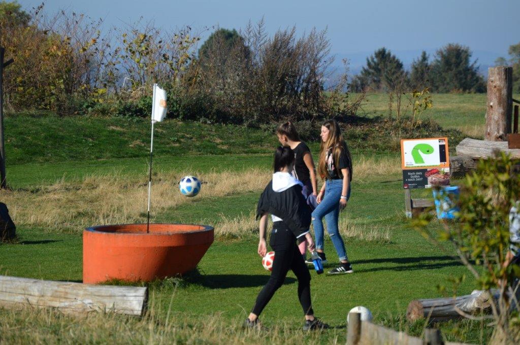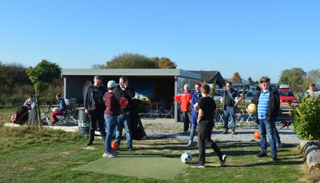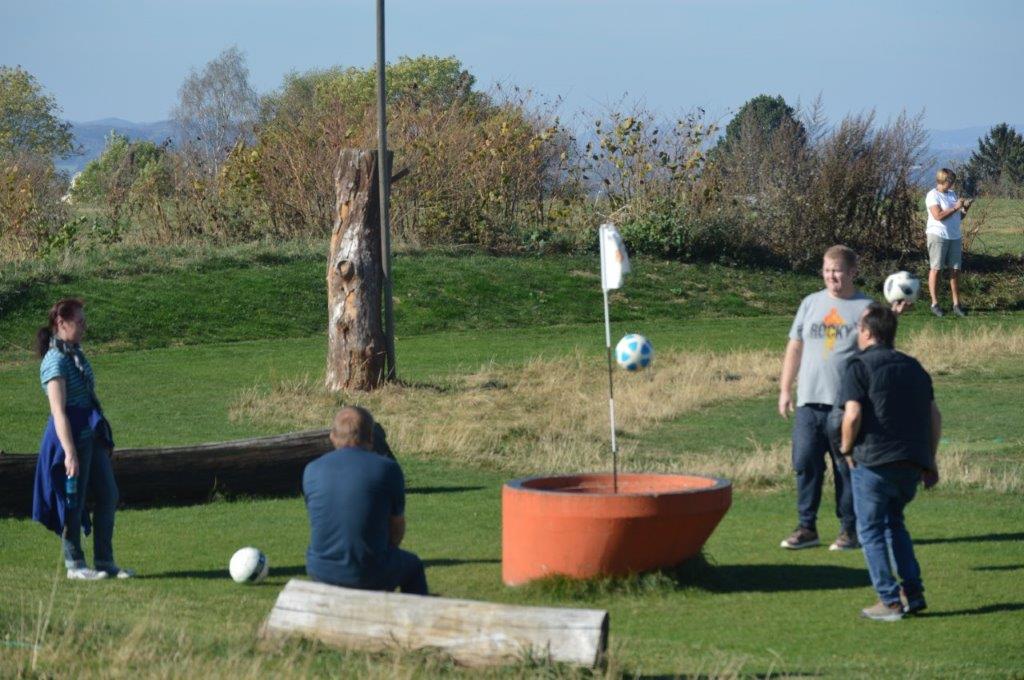 Nach einer relativ kurzen Nacht und einem ausgiebigen Frühstück sind wir zum Fußballgolfplatz, der sich in unmittelbarer Nähe unseres Schützenplatzes befindet, aufgebrochen. Am Platz angekommen wurden die Spielbedingungen bekannt gegeben und mehrere Gruppen gebildet. Nachdem alle die 18 Loch Bahnen geschafft hatten verbrachten wir noch einige Zeit in der Sitzecke des Golfplatzes und genossen die warme Herbstsonne.