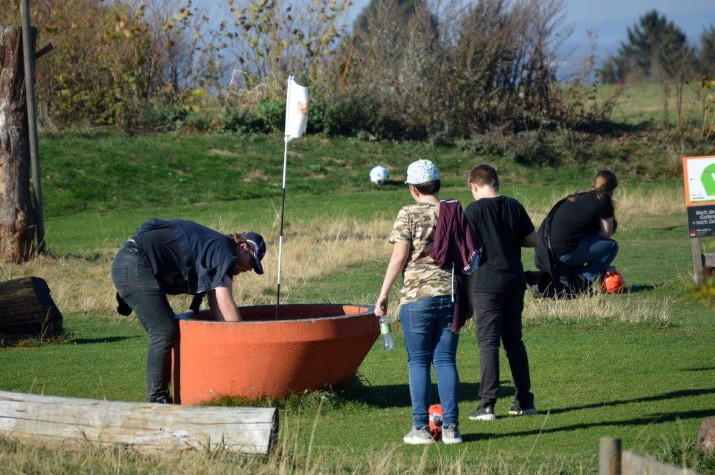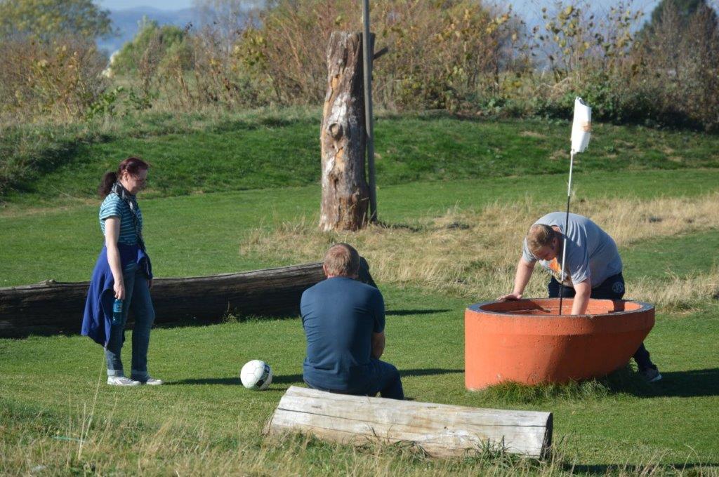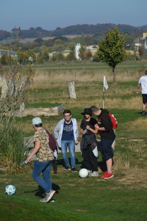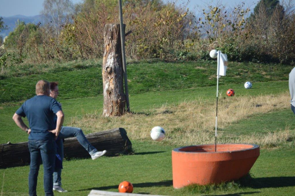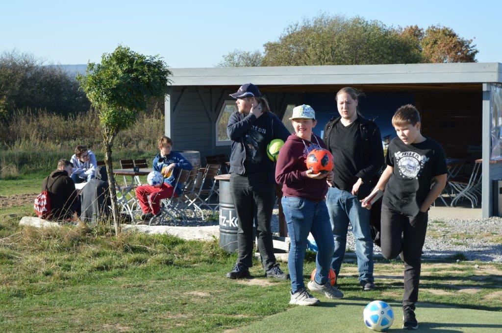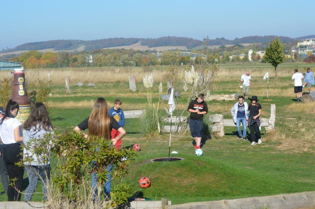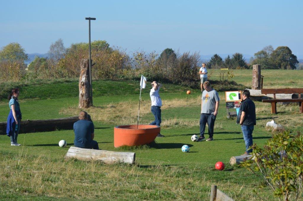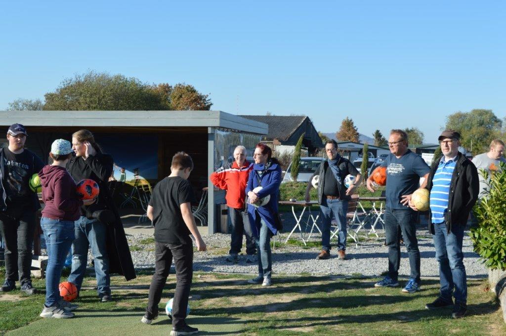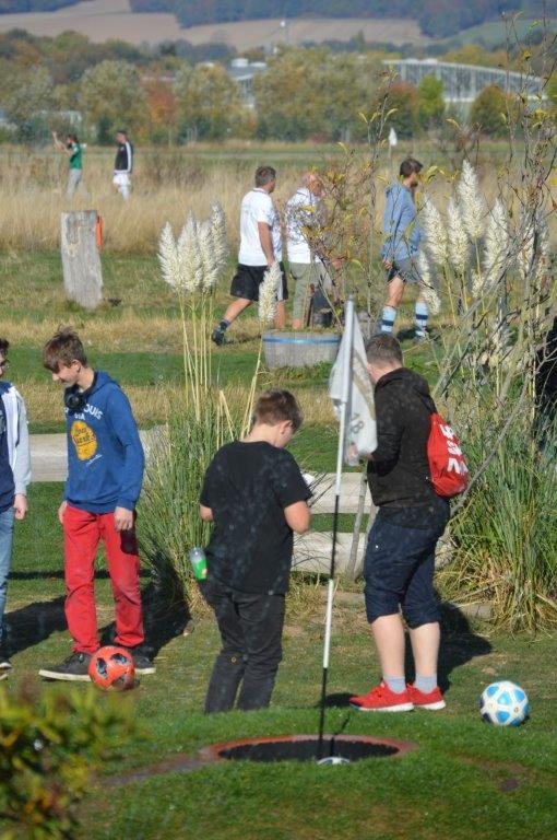Nach einer relativ kurzen Nacht und einem ausgiebigen Frühstück sind wir zum Fußballgolfplatz, der sich in unmittelbarer Nähe unseres Schützenplatzes befindet, aufgebrochen. Am Platz angekommen wurden die Spielbedingungen bekannt gegeben und mehrere Gruppen gebildet. Nachdem alle die 18 Loch Bahnen geschafft hatten verbrachten wir noch einige Zeit in der Sitzecke des Golfplatzes und genossen die warme Herbstsonne.
