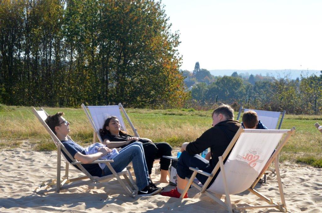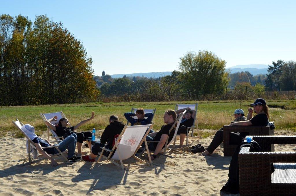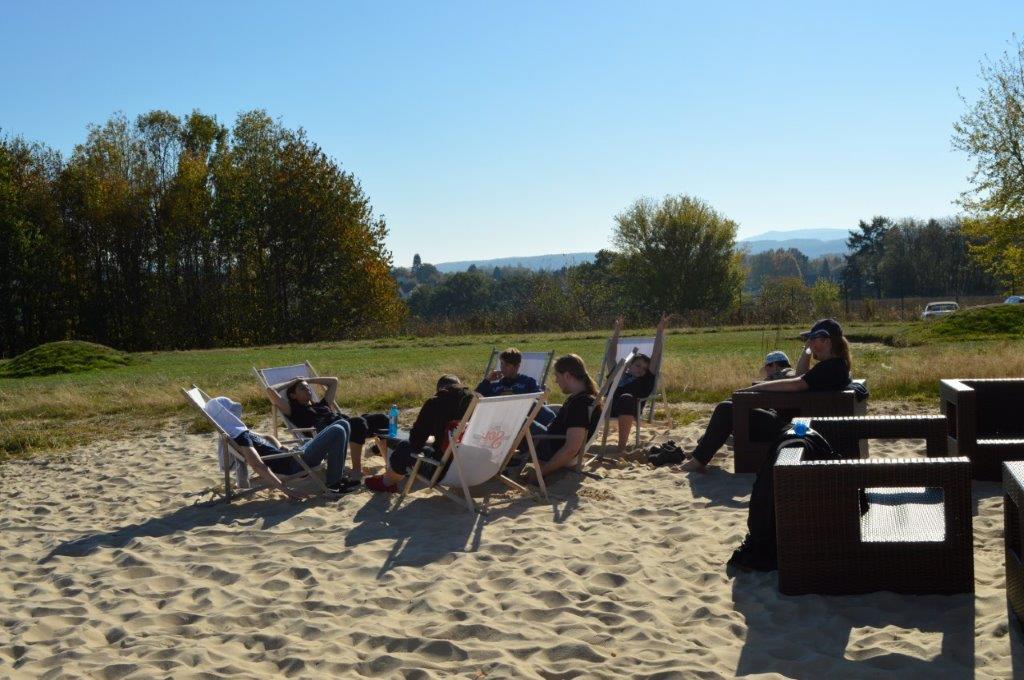 Das Wetter an diesem Wochenende war einfach nur traumhaft. Begonnen haben wir am Samstag mit einem Kaffee trinken und einer Kennlernrunde. Danach haben wir ein Teamspiel auf dem Platz durchgeführt. Hier mussten wir mit Hilfe von Bändern an einem Holzring an dem ein Metallbügel aufgehängt war mehrere Holzklötze aufeinanderstapeln. Dieses gelang natürlich nur wenn wir im Team zusammengearbeitet haben.