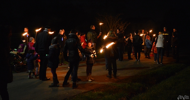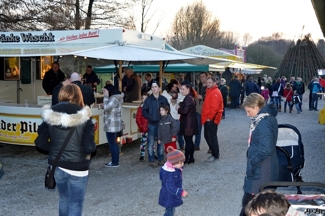 Ein schöner und langer Fackelzug wanderte von der Schönen Aussicht zum "Baumstapel" am Schützenplatz und dort angekommen durften alle Fackelträger das Feuer entzünden.
