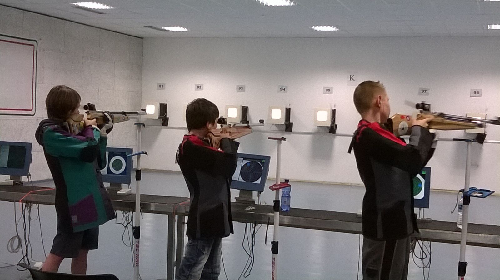 Danach haben wir uns erstmal in der Halle umgesehen. Außer Luftgewehr wurden auch noch andere Disziplinen wie KK Liegend ( 60 Schuß) und verschiedene Pistolendisziplienen  geschossen. Für die drei war es das erste mal das sie im Landesleistungszentrum waren und sicher sehr Interessant das alles zu sehen. Nach einer kleinen Stärkung wurde es so langsam Zeit sich für den Wettkampf vorzubereiten. Wir sind also zu unserem Stand gegangen und haben alles aufgebaut. Dann kam die Durchsage das die Stände besetzt werden konnten. Die Nervösität stieg bei allen dreien spürbar an. Dann wurden die Regularien vorgelesen und nach dem Startzeichen hatten alle 15 Minuten für die Einrichtung auf dem Stand inklusive Probeschüsse.