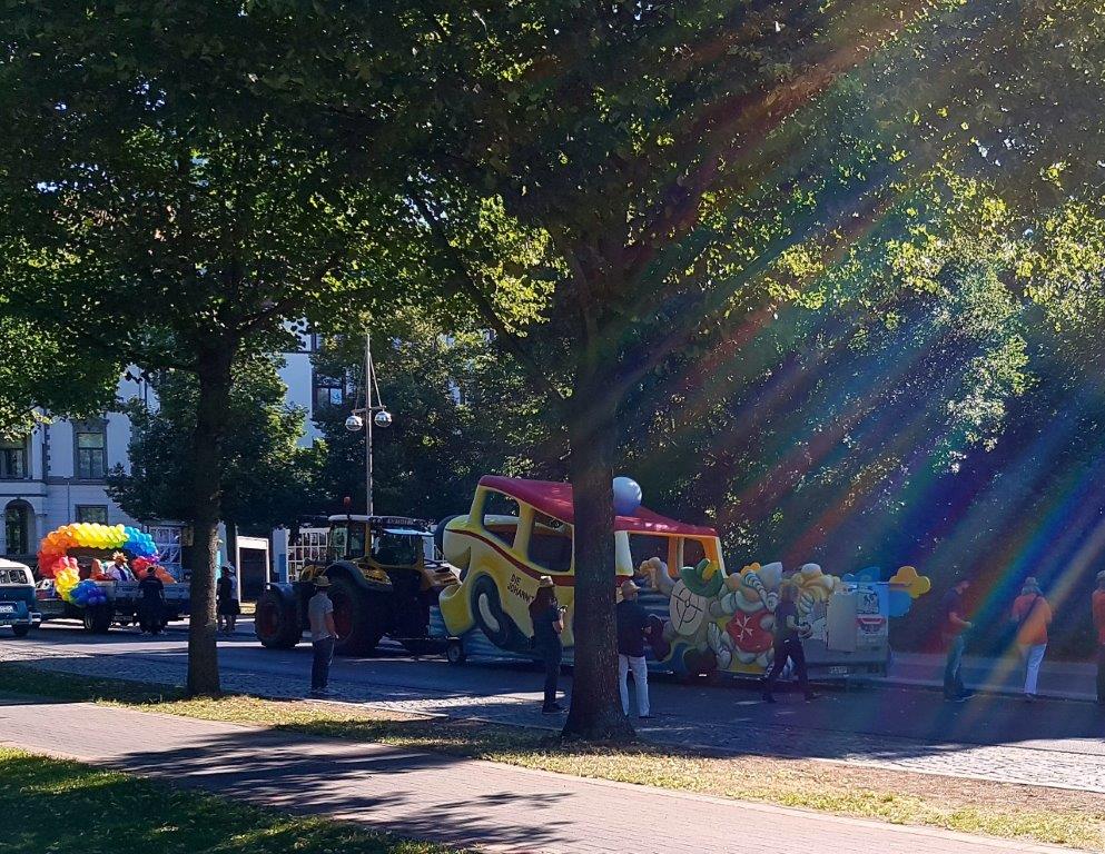 Buntes Volk, viele Schützen, Tanzgruppen, bunte Wagen, Musikgruppen und sogar eine Bulliparade waren mit dabei. 12000 Leute waren angemeldet.