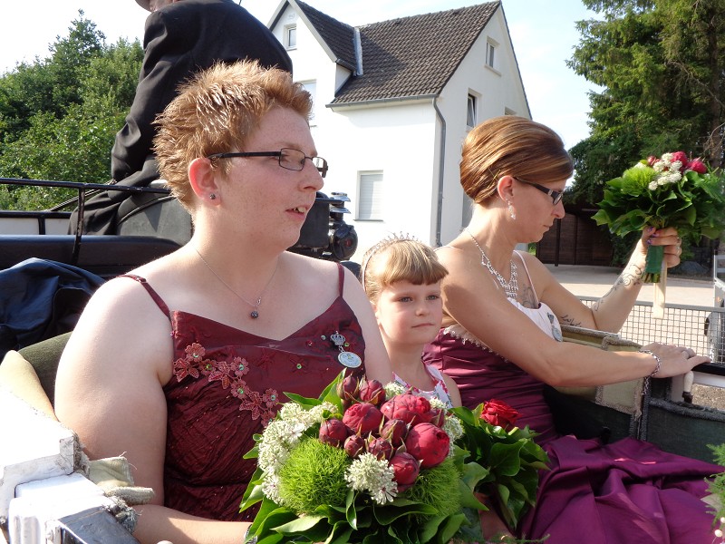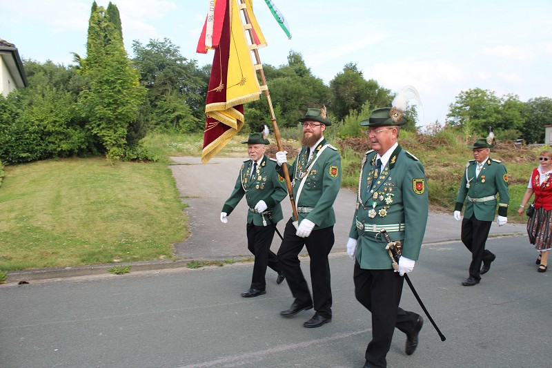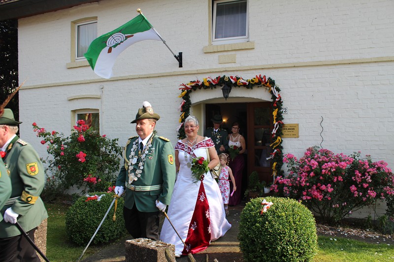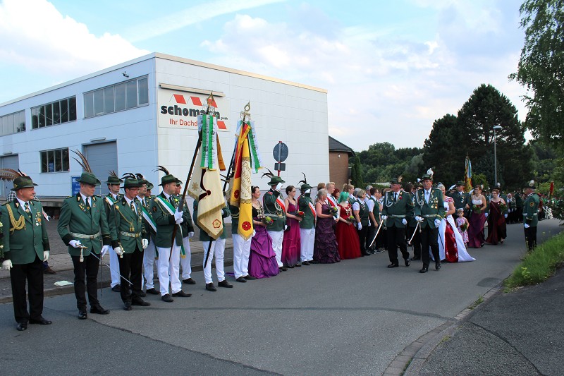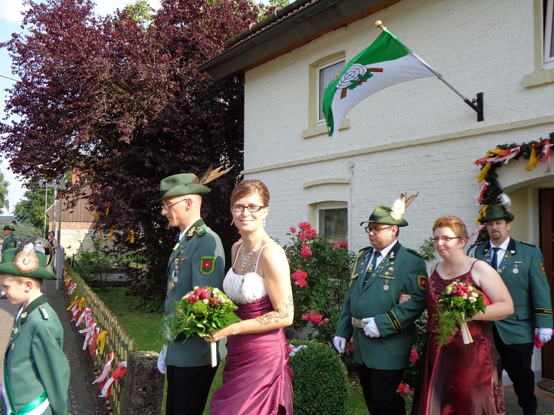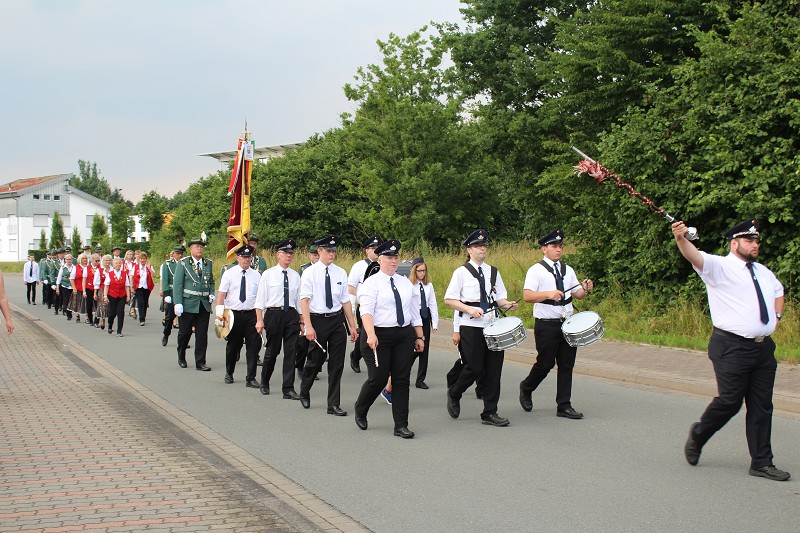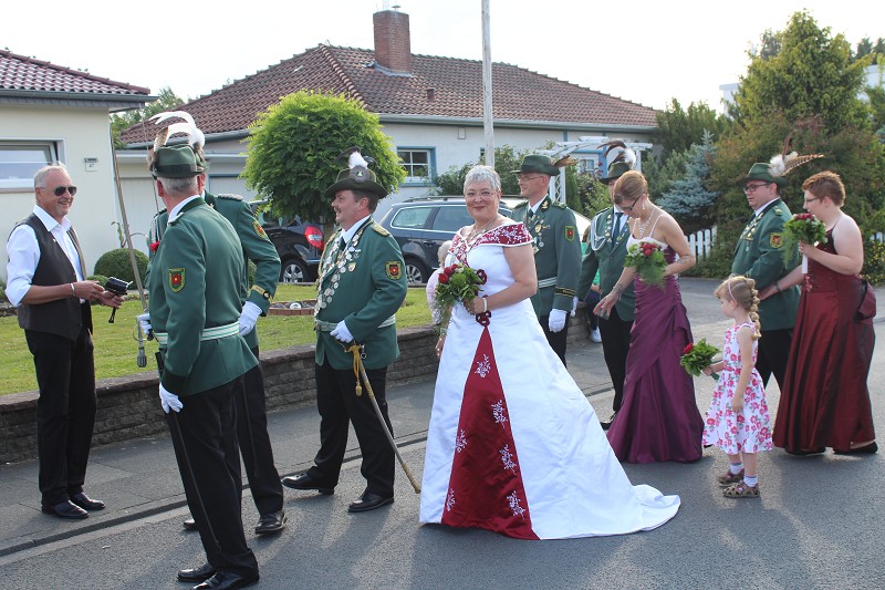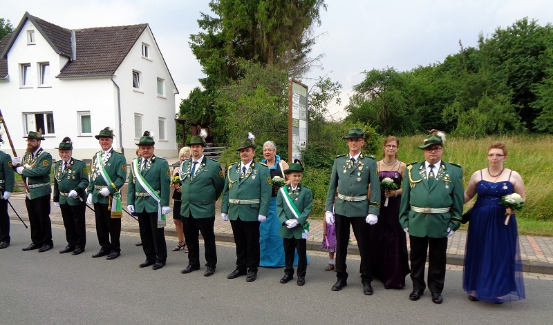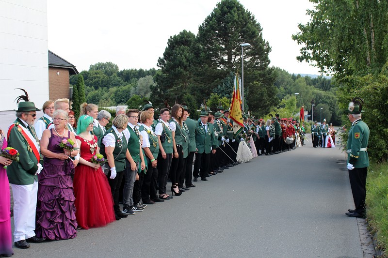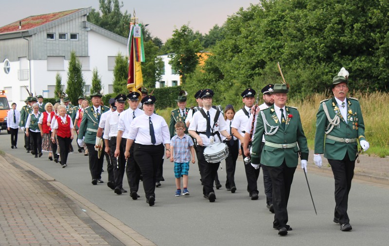 Mit einer weißen Kutsche ging der Rundmarsch mit den Gastvereinen, dem Beller Spielmannszug und der Marpetaler Blaskapelle zum Schützenplatz.